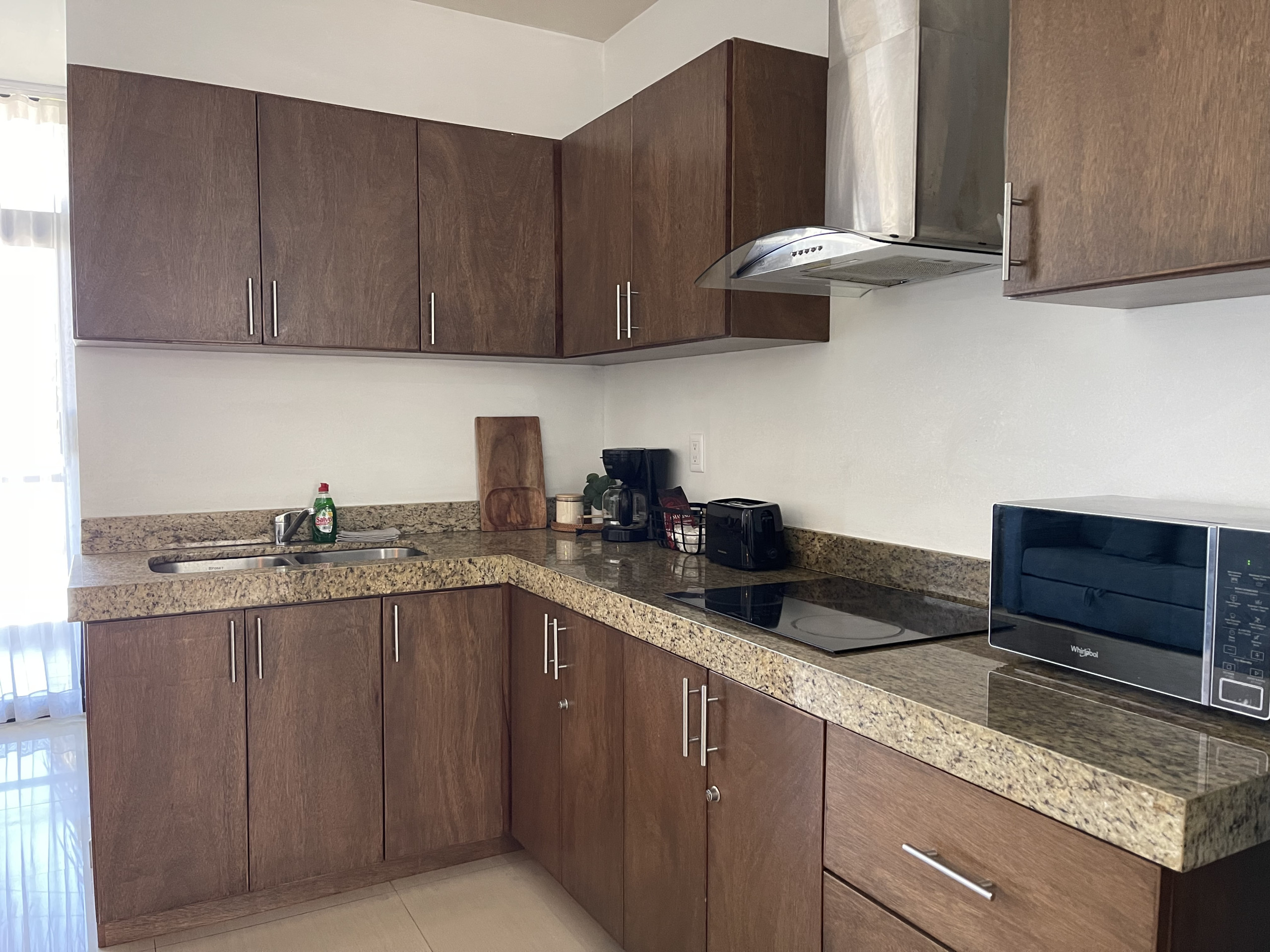 -Fully equipped kitchen with appliances and utensils